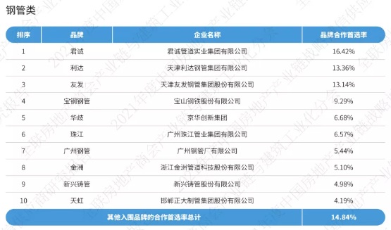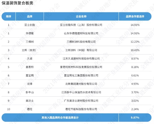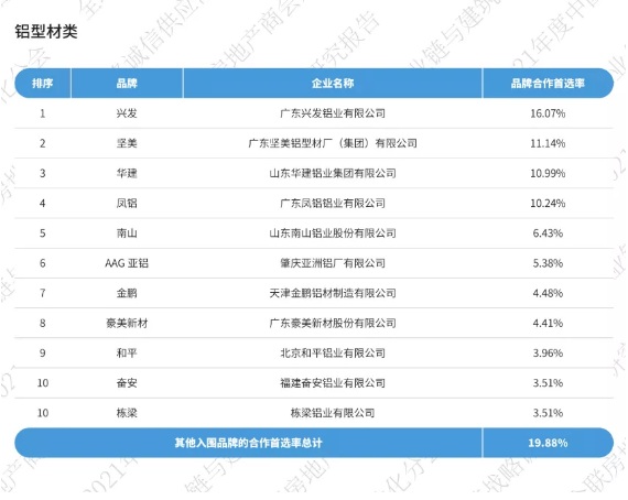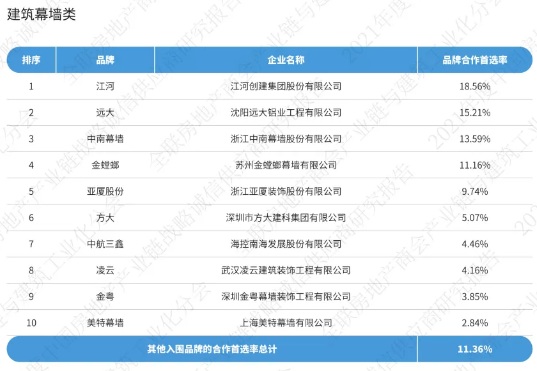 《2021中國房地產產業鏈戰略誠信供應商研究報告》通過征集、分享、篩選在中國內地從事房地產產業鏈相關經營活動的供應鏈企業,按照品牌力、產品力和合作力三大維度,從品牌知名度、綜合實力、核心競爭力、研發實力、產品品質、戰略合作量、服務能力七大角度出發,以會員推薦、實地調研、問卷訪問、專家評審等途徑方式對供應鏈企業與我國TOP200房地產企業以及商會房地產會員企業的戰略合作情況,進行品牌首選率統計計算。