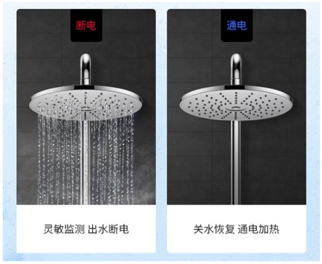 出水?dāng)嚯姡鹤儽粍?dòng)防護(hù)為主動(dòng)防護(hù)。通過進(jìn)、出水口的流量傳感器控制電源,打開水龍頭立即關(guān)閉電源,保障洗浴安全(這個(gè)功能在操作界面上可選擇開啟或關(guān)閉)。
