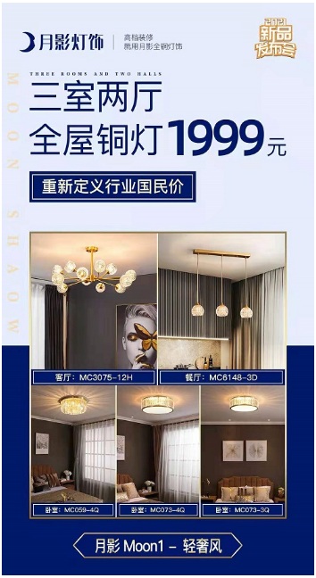 正是對產品的精益求精,月影家居為消費者帶來了優質的產品體驗感。能用1999的價格購買這樣一套全屋燈飾套餐,對消費者來說是一件極高性價比的事。