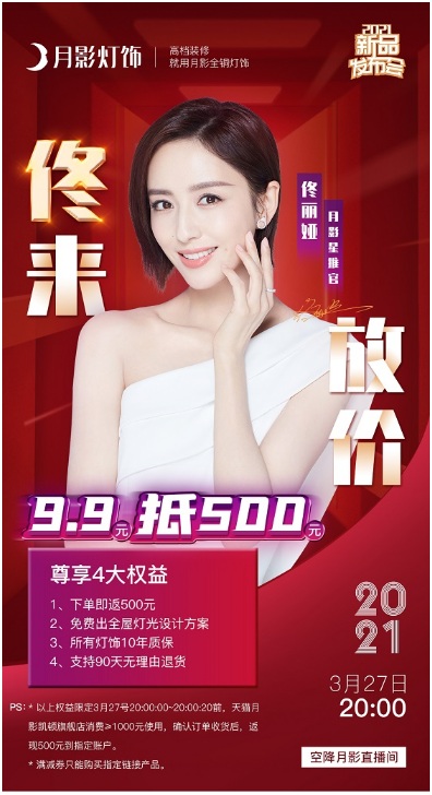 3月27日驚艷了春晚的女神佟麗婭將會(huì)親臨月影直播間,想聽女神的八卦嗎?想要女神為你低價(jià)挑選全屋好燈嗎?你還不趕緊看過來!掃描海報(bào)下方二維碼,進(jìn)入月影家居總裁直播間,點(diǎn)擊左側(cè)“報(bào)名”按鈕,直播間提前知道,不容錯(cuò)過哦!