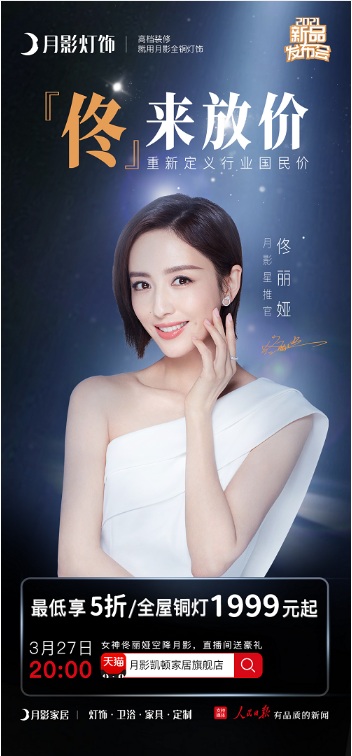 理想生活,就要不“佟”凡響,月影家居攜手佟麗婭邀您一起相約3月27日晚20:00高燃直播夜,氣質女神佟麗婭作為月影星推官,將做客月影直播間,給大家帶來超值福利!