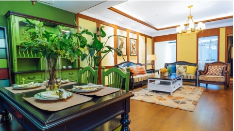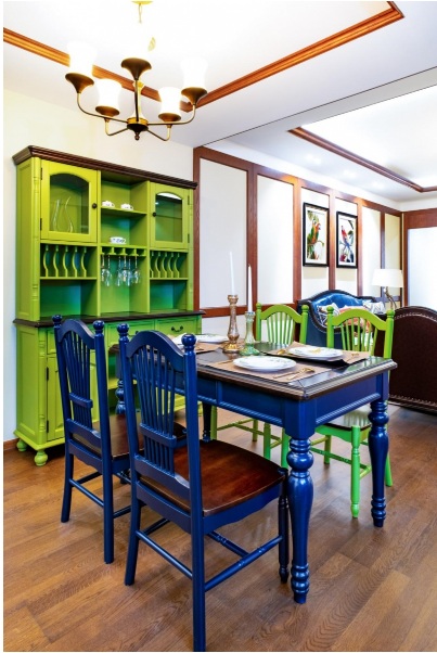 即使在冰冷的城市里,也可以詩意的棲居,這是幻月小鎮(zhèn)設(shè)計精神的集中體現(xiàn)。幻月小鎮(zhèn)采用濃郁多姿的色彩,客廳以復(fù)古的純實木地板和白色吊頂構(gòu)成最經(jīng)典的底色,再輔以貴族藍、深綠、瓷白、明黃色等色彩的搭配,構(gòu)成一個夢幻、詩意,充滿想象的空間。