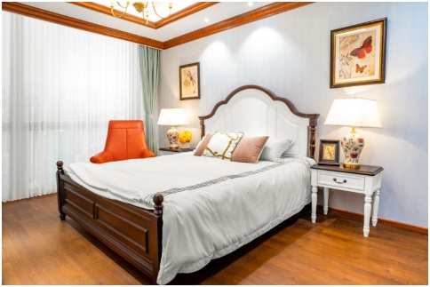 主臥實木床具和床頭柜延續(xù)了客廳的配色,生活場景和私密空間和諧統(tǒng)一;次臥有別于主臥配色,樸素而經(jīng)典,形成主次分明的特點。特別值得一提的是,幻月小鎮(zhèn)配置的家具全部采用緬甸進口卡斯拉木制作,采用澳達樹熊高檔木器漆,木質(zhì)硬度高,不易變形開裂,具有超長的使用壽命。