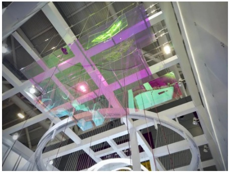 展覽形態概念源于細胞,透光材料有無限的可能性,如同細胞,經過組合、生長帶來無限潛能和生命,就像材料,為他物賦予生命。通過大面積懸掛漸變墻的形式展示卡樂板材料的性能,技術的優勢,色彩的豐富變化,給大家提供卡樂板材料運用的想象力空間