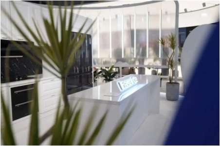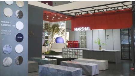 全巖家居定制館主要體現:第一個是新,第二個是全,第三個是個性化。實現家居全案輸出,引領潮流、追求個性化與品質生活的心理與消費需求,展館內能看到大幅面的巖板背景墻,整體廚房、衣柜,巖板不止運用于家居空間各種需求,還有移動家具如餐桌、電視柜等等。