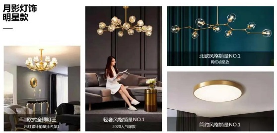 月影家居此次推出的1999全屋銅燈套餐包含輕奢、北歐、歐式、美式、現代、國潮風等六大風格,這是由設計師精選搭配的,是匹配家居裝修主流需求,是消費者燈飾搭配的不二之選。