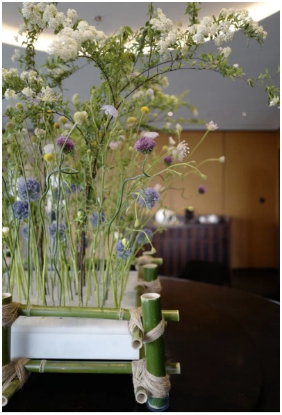 羽ASPLUME主理人姜輝先生為這場別趣橫生的展覽定制了“春”系列節氣裝置。將二十四節氣裝置的主旨提煉并加以升華,通過春竹、夏花以及現代材料相結合,演繹出了春天的生機靈動,塑造出了自然中生命的力量與堅韌。