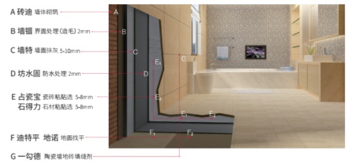 廚衛裝修則需要注意防水環節,具體裝修所需材料依次為墻體砌筑、墻體界面處理、墻面找平/地面找平、家裝防水、瓷磚/石材粘貼與填縫。