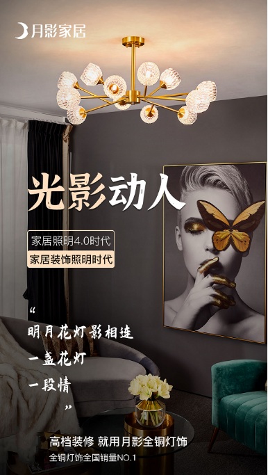 這個時候,燈具照明行業明顯出現了兩大分類:裝飾照明和功能照明,類別不同,功能屬性也不同。其中,功能照明是純粹用做照明、取光,而裝飾性照明不僅具有照明取光的作用,而且外觀精美,可以作為家里的裝飾品。歐普、雷士的產品主打的就是功能照明,產品在外觀上偏簡潔化,注重實用性。說到另外一個分類的裝飾照明,新銳品牌月影家居是這個行業里面的第一,雖然起家只有十余年,但是在全銅裝飾燈這個細分品類里面有著堅不可摧的地位。