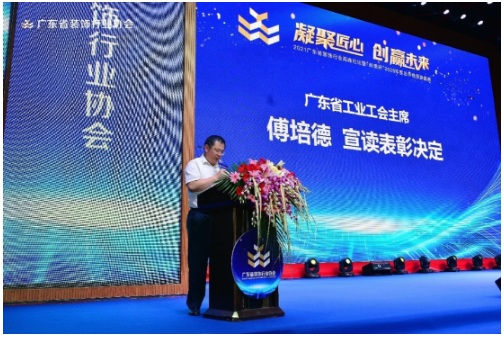 省工業工會主席傅培德同志為理事長單位:廣東省裝飾行業協會、順德職業技術學院設計學院頒發聘書。