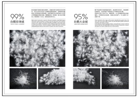 一直以來,白翎羽絨都以“打造健康睡眠,創(chuàng)造家居文化”為發(fā)展宗旨。與南方絨相比,北方絨具有生長周期長,絨朵較大的特點,同時北方絨在保暖性與透氣性上比南方絨更勝一籌,而這些因素間接影響著人們是否能夠足夠舒適地入睡。白翎羽絨堅持選用生長周期長達14個月420天之久的東北鴨絨,經(jīng)過四季的洗禮,這種鴨羽絨都很成熟飽滿,所以絕無異味。由于鴨鵝都無汗腺,一身潔白的羽毛使羽絨產(chǎn)品具有冬暖夏涼的效果。在制作工藝上,白翎羽絨堅持采用高壓、壓光和反鉆絨處理,羽絨床品面料均是采用高支高密的純棉面料制作而成,與市面上一般的羽絨產(chǎn)品相比,白翎羽絨不含有化學(xué)成分,更加具有親膚性,同時能夠保證羽絨自身的保暖、吸濕排汗的功能。