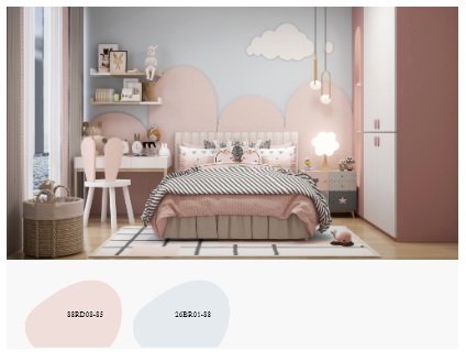 翠綠、杏黃、天藍都是首選的主色,同時選擇二至三種能互補的顏色相互輝映,色彩不妨多一些,也可以在同一幅墻上涂出不同的色塊或小圖案,不能過于單調。
