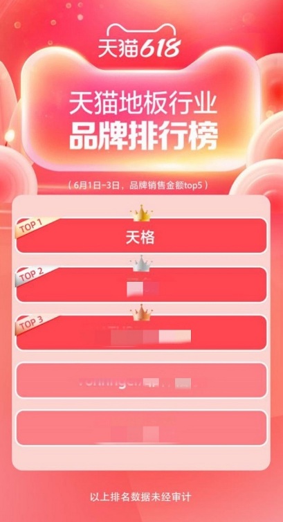 也正因如此,天格地板持續暢銷海內外市場,從2020年開始更是從線下“熱”到線上,成為線上消費的大熱選擇。據天貓平臺銷售數據顯示,在2021年天貓315活動、天貓2021年春季家裝節、2021年55吾折天盛典等活動以及618大促首輪活動中,天格地板連續蟬聯天貓地板品類TOP1,引領高品質新消費趨勢。