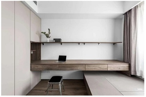 嵌入式的壁柜可以用作化妝臺,亦可作為簡易的書桌,閑暇時坐下來看看書,也是一種無比輕松的享受。