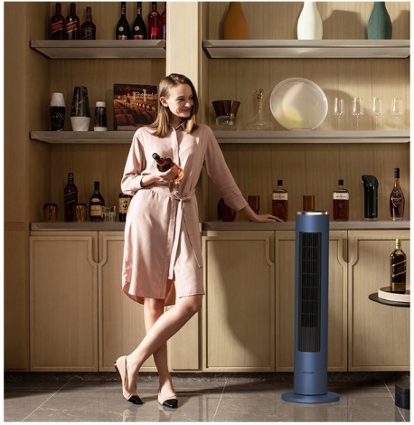 Dream Maker造夢者無葉凈化冷暖風扇去繁就簡、返璞歸真,符合紛繁復雜、快節奏時代下的精致女性的審美追求;普魯士藍和香檳金色的古典高級配色,極簡所散發出來的時尚高級感,也符合品質化升級的訴求。與現代家居更融合,立式圓柱形機身也更便于收納,甚至不用收納,隨處一擺,都可以是一道靚麗的風景線。