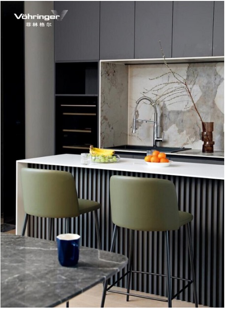 蘇太太喜歡下廚和烘焙,設計師利用縱深的餐廳,將其中一方打造成了西廚區,變成夫婦兩人生活中的“人間煙火氣”。