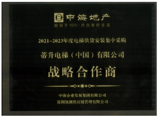 近日,中國房地產十強企業中海企業集團2022年度第一批次集采中標儀式在深圳中海大廈成功舉辦,蒂升電梯作為中標單位接受了現場授牌,正式成為中海企業集團2021-2023年度電梯供貨安裝集中采購戰略合作商。