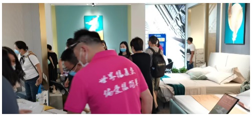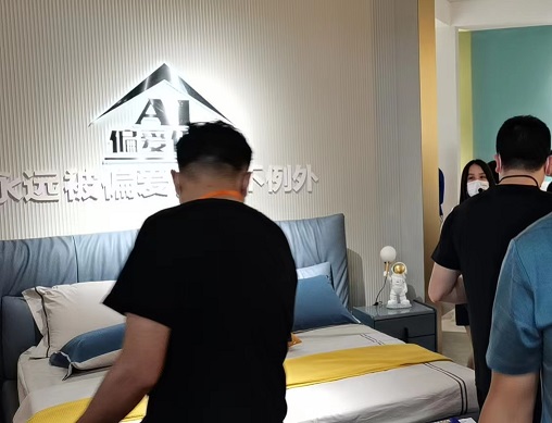 擁擠的不一定是北京街頭,還有熙熙攘攘的偏愛展廳。偏愛家具本次展會改變了傳統家居行業的”黑“店風格,不再是一塵不變的黑、白、灰,選用了代表年輕、時尚的莫蘭迪色系做為主色調,并大膽選用6000K高亮筒燈,將細節完美的展現在全國經銷商面前。新穎的裝修風格與精挑細選的新款產品,深受廣大客戶喜愛,展位熙熙攘攘,成交讓人驚艷。