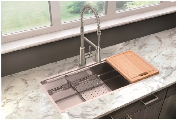 摩恩功能性復(fù)合大單槽,加強(qiáng)了水槽一二層的聯(lián)動,提升了空間利用率,解決了廚房空間小,臺面不夠的痛點(diǎn),同時(shí)貼心配置了砧板、置物板、可瀝水置物板,讓用戶的整體操作更省時(shí)、高效。