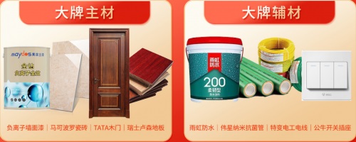 負離子墻面漆、馬可波羅瓷磚、TATA木門、瑞士盧森地板等高端主材,雨虹防水、偉星納米抗菌管、特變電工電線、公牛開關插座等一線高品質輔材,全包圓全心全意用最佳環保品質建材的升級為客戶打造最具性價比的整裝,讓客戶真正能住的安心、放心、省心。