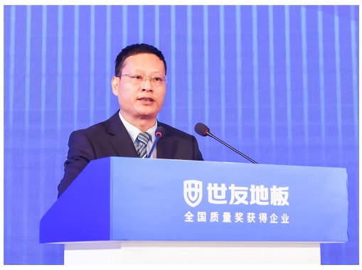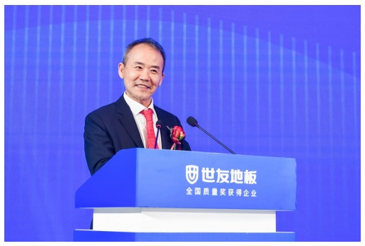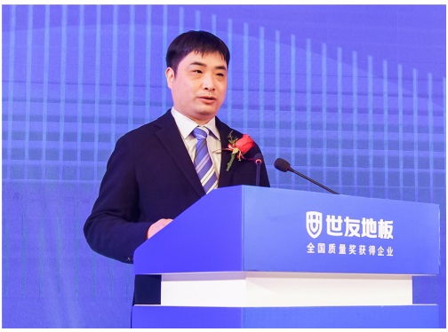 中國林產工業協會會長王滿先生發表講話,長期以來,他全面關注世友地板“健康”和“品質”的發展道路,高度贊揚世友關注人居健康、扛起“全健康大旗”社會責任感。相信在有關部門的大力支持下,在世友地板這樣的優勢領軍企業的引領下,木業行業一定能夠不斷突出重圍,走出一條綠色發展、高質量發展之路。