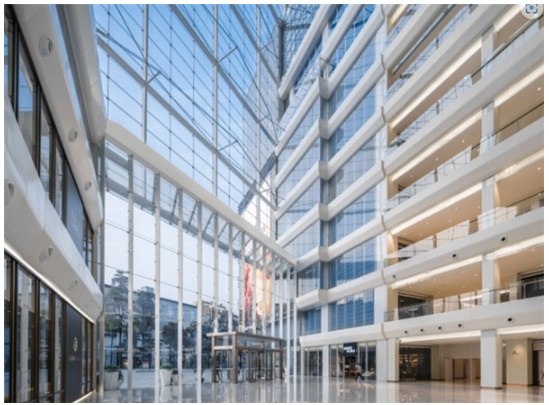 西面和北面的入口玻璃盒由一個11層高的透明門廳組成,創造了宏偉的入口,模糊了內外界限。鋸齒狀的建筑形式為高端旗艦店提供了兩倍高和三倍高的店面,象征著奢侈品牌形象,并以閃閃發光的外觀設計吸引消費者。