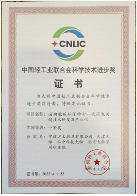 方太再次斬獲中國輕工業聯合會科技進步一等獎