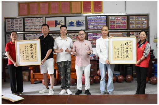 溫賽婷校長、龍村鎮志愿者協會鄒麗娟執行會長向廣東省裝飾行業協會、飾界網贈送紀念禮物,并向到場的愛心人士代表頒發捐贈證書。