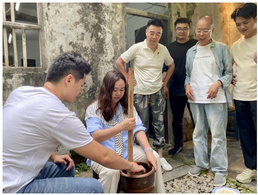 捐贈儀式結束后,訪問團一行探訪了風景如畫的先河村琴江秘境,參觀百萬年前的自然風貌——原始神秘遠古冰川遺跡石臼群,考察了客鄉村建保護案例,進行鄉村振興茶旅園深度體驗,并觀看中超聯賽——梅州客家隊與上海海港隊的精彩比賽,并拜訪瞭望山·舍丨文化工作室,與負責人古志浩、溫燕青、鄒暢根等杰出青年們就鄉村振興議題深入交流。
