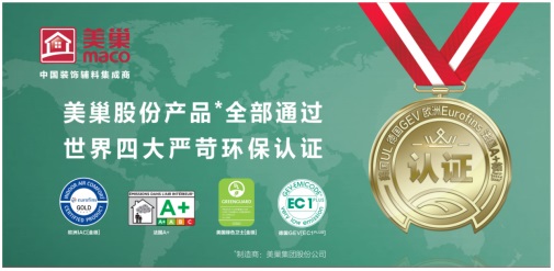 美巢輔料環保綠色,積極深入產品研發,只為讓用戶享受到更有環保價值的產品。目前在國內,只有美巢旗下全部產品通過了世界四大嚴苛環保認證的最高級標準:美國UL綠色衛士【金級】認證、歐洲Eurofins IAC【金級】認證、德國GEV【EC1PLUS】認證以及法國【A+】標準。美巢輔料憑借出色的環保品質得到了世界四大嚴苛認證,在市場上也贏了的良好的口碑,得到了眾多消費者支持和信賴。