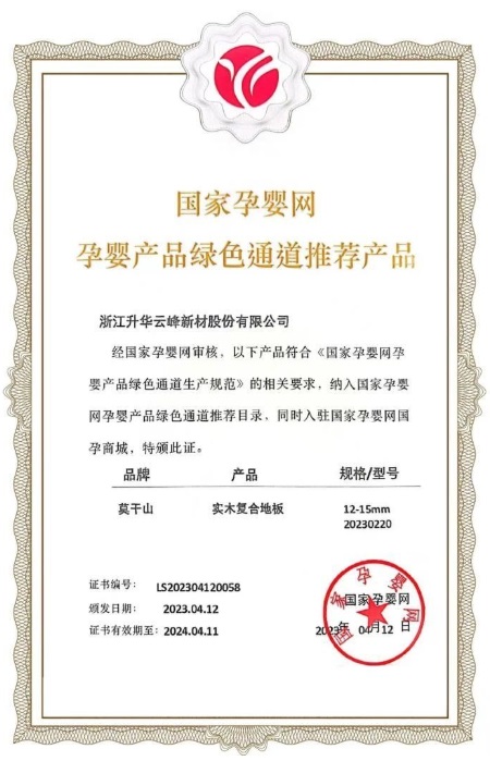 站在用戶思維上思考問題,從污染源頭端發(fā)力,不斷優(yōu)化迭代產(chǎn)品的環(huán)保性能,在實力出圈的同時,更讓莫干山ENF母嬰級地板摘得國家孕嬰網(wǎng)“孕嬰產(chǎn)品綠色通道推薦產(chǎn)品”榮譽,成功入選國家孕嬰網(wǎng)體系,叩開了家居品牌環(huán)保差異化實踐的新大門。