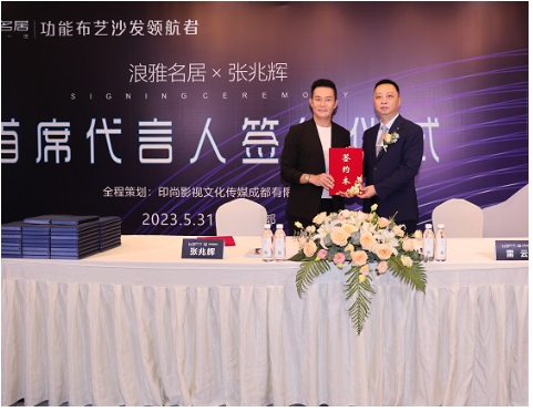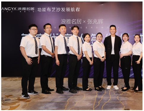 浪雅名居家居成功簽約香港演員張兆輝為品牌代言人,為他們的主營產品功能布藝沙發代言。董事長馮翠華、總裁雷云、執行總裁馮云、營銷總經理郭紅文,品牌部羅潔團隊出席該簽約儀式。