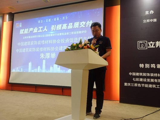 中國建筑裝飾裝修材料協(xié)會投資促進部主任、建筑涂料分會秘書長朱厚舉