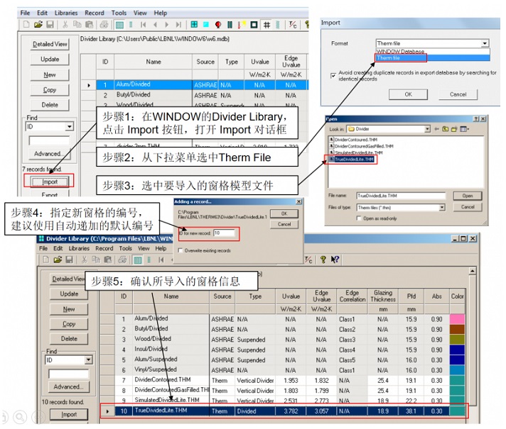 ⑨ 將包含計算結果的 THM 文件導入 WINDOW Divider Library(窗格庫),如 圖8-17 所示。有關導入THERM 文件的更多信息,請參閱《WINDOW 用戶手冊》的“第4.7.3節:導入 THERM 文件”。