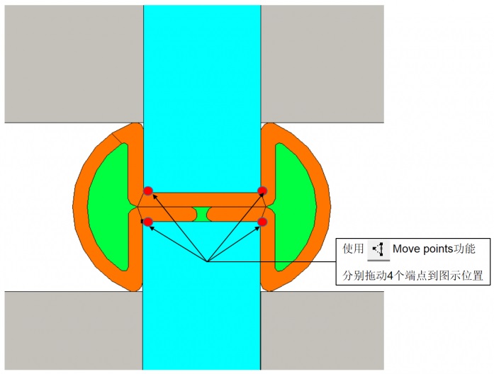 圖 8-43:分別將上下兩個玻璃系統的中間片玻璃的端點拖動到圖示位置