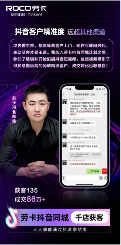 在大電科技創始人、抖音本地生活資深專家陳景清看來:“抖音同城不是一個短期獲利的工具,而是一個長效經營機制。在整個定制行業,勞卡是率先跑通整個抖音本地生活模式的企業,對未來家居企業抓取本地生活流量提供了一個先行案例。”