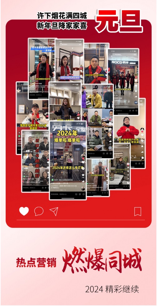 每一個做拎包的勞卡經銷商都會在當地核心樓盤打造樣板間,這些樣板間自然而然就成為了抖音短視頻的優質素材。在總部賦能團隊的支持下,經銷商根據小區交付不同時間節點輸出內容,通過內容與當地業主建立強粘性,降低用戶的決策成本。再疊加勞卡拎包中成熟的地推和活動爆破模式,積極引流獲客并完成流量轉化。