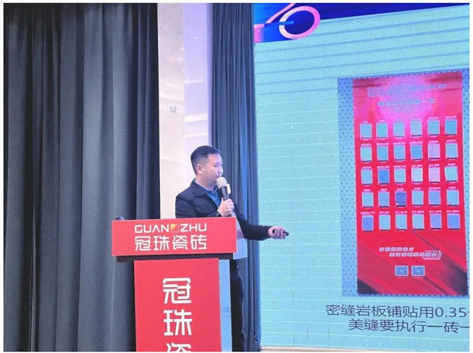 冠珠瓷磚品牌總經(jīng)理潘瀚在開場致辭中向大家分享了冠珠市場策略部署。他指出,當(dāng)前是市場爭奪的關(guān)鍵時(shí)刻,應(yīng)積極布局整裝市場,優(yōu)化產(chǎn)品結(jié)構(gòu),拓展家裝渠道,建立巖板交付系統(tǒng),并整合流量資源以推動營銷,搶占市場先機(jī)。冠珠總部亦將持續(xù)支持經(jīng)銷商們建立完善的品牌運(yùn)營模式,研發(fā)符合消費(fèi)者需求的新產(chǎn)品,以提升市場占有率。