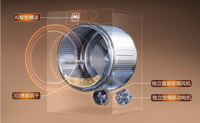 在烘干環節,海爾干衣機創新雙擎熱泵科技,采用獨立變頻驅動電機+獨立直驅變頻風機,實現1:1全時高頻正反轉,讓沖鋒衣在筒內充分抖散,舒展透干。再配合AI智控算法,匹配烘干參數,還與3D透視烘干科技一起,精準檢測衣物干濕度,保證衣干即停不過烘。而烘干全程保持56℃的適宜溫度,還能有效激活沖鋒衣表面的防水涂層性能。