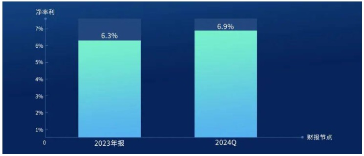 縱向來看,海爾智家的凈利率從2023年的6.3%提升到2024Q1的6.9%。