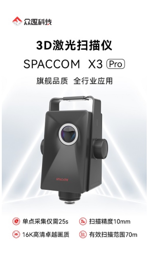 歷時2年,眾趣科技正式公布3D激光掃描儀的全新版本——SPACCOM X3 系列,從硬件外觀到硬件性能全方位升級優化,旨在打造一款更快采集三維數據、更精準復刻物理世界、更逼真還原畫面真實色彩的3D激光掃描儀,為數字空間三維重建提供縱深技術支撐。
