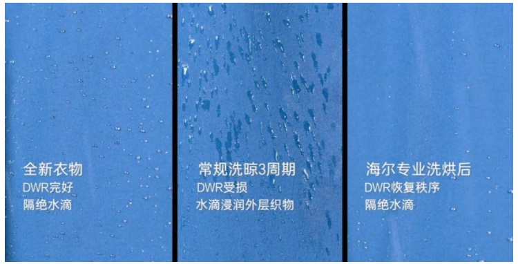 除了烘干衣物,雙擎熱泵科技還能對特殊面料的衣物起到養(yǎng)護作用。拿沖鋒衣來說,傳統(tǒng)晾曬只能做到“晾干”,用傳統(tǒng)干衣機則會因為外干內(nèi)濕引發(fā)過度烘干,破壞防水涂層。而海爾雙擎熱泵干衣機,原創(chuàng)雙擎熱泵科技配合AI智控算法,能匹配最佳烘干參數(shù),56度黃金溫度,沖鋒衣不僅烘得又快又透,同時改善沖鋒衣的防水性能,避免損害面料。
