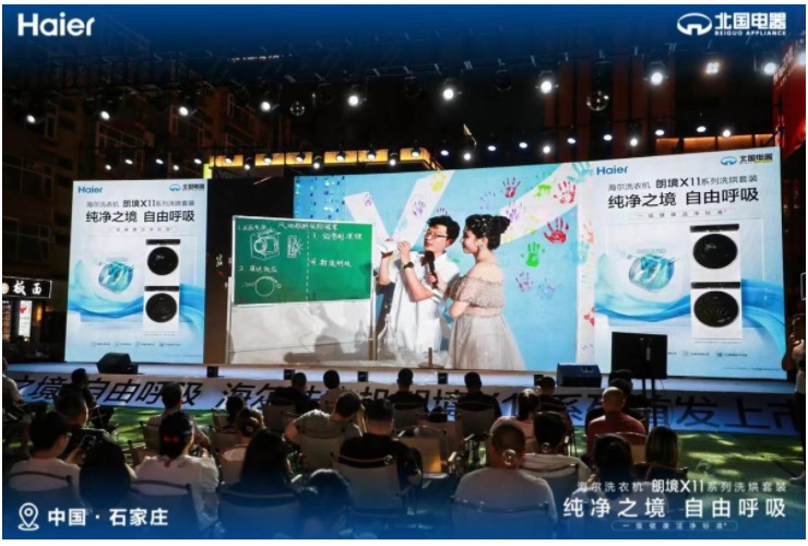 6月15日,在“穿行四季·逐風季”石家莊站活動現場,海爾洗衣機上市“會呼吸”的朗境X11系列新品,有效解決了洗衣機潮濕異味的難題。