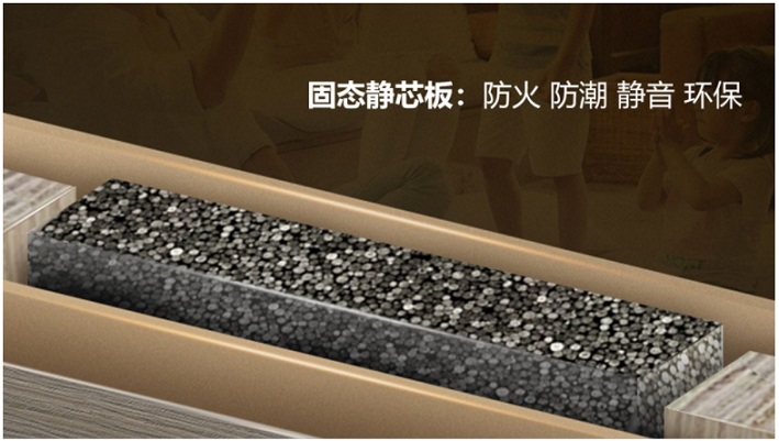 芯材上,運用行業領先技術推出具有“防火、防潮、抗變形、靜音降噪、無毒無害”五大優勢的——固態靜芯板。