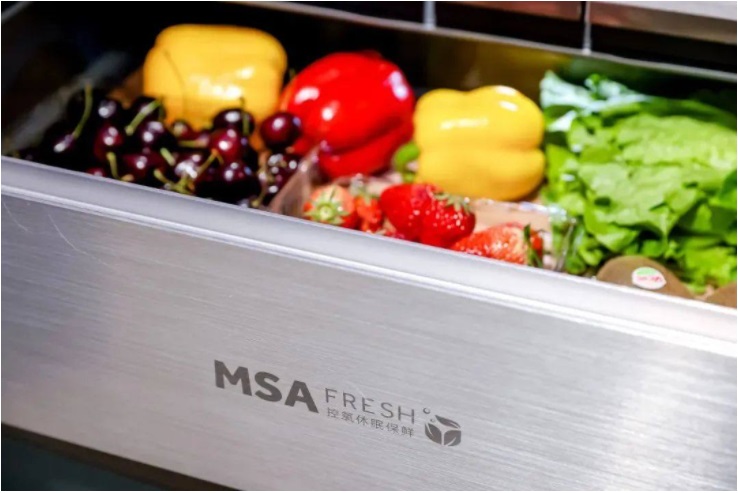 具體來說,卡薩帝冰箱發明的MSA控氧保鮮科技,可以在控溫、控濕的基礎上,調節儲鮮空間內的氮氧比例。在低氧環境下,食材不僅表面不易氧化,細胞的新陳代謝過程也會減緩,內部水分和營養成分不易流失。