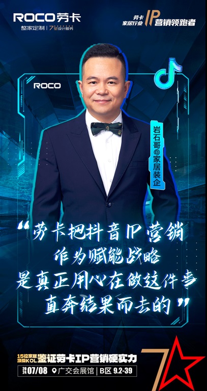 在展會期間,家居行業(yè)頂流抖音達人@劉凡家居短視頻、巖石哥@家居裝企、@王掌柜、@聞初聊全案、@林瓏家具建材營銷、@胡鋒說裝修,@北京核桃奶爸、@家居璐璐姐、@阿超做短視頻、@老羅聊家居等空降勞卡展館,共同開啟了一場“勞卡家居行業(yè)IP營銷領(lǐng)跑者”的鑒證之旅。