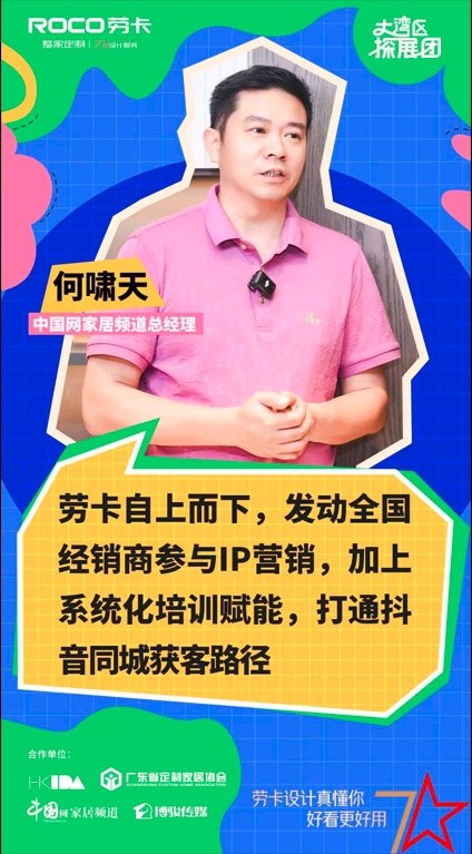 除了以好設(shè)計、好產(chǎn)品促成終端成交,在行業(yè)進入存量競爭時代,獲客成本越來越高的背景之下,如何幫助經(jīng)銷商解決“獲客”“轉(zhuǎn)換”兩大難題,也是當下眾多品牌的當務(wù)之急。勞卡率先洞察先機,憑借“短視頻+直播+本地投放”三位一體的策略,在全國建立起強大的經(jīng)銷商IP矩陣,幫助經(jīng)銷商走出獲客難,營銷難,轉(zhuǎn)化難三重困境。