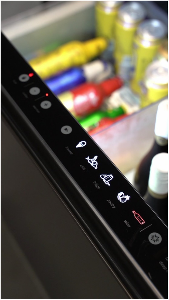 隨著抽屜的拉開,出現了一排觸摸按鍵。只要輕觸解鎖,用戶就能一鍵切換冷凍、冰溫、冷藏、果蔬、紅酒五種溫區模式,滿足從-18℃~15℃的存儲需求。想吃牛排,設置成-5℃冰鮮微凍;想保鮮果蔬,換成果蔬模式;對于紅酒愛好者,冰箱還能變成專屬酒柜。多溫區抽屜式格局的實現,離不開斐雪派克的ActiveSmart智控溫技術,該技術能實現0.5℃精準溫度調控,避免溫度變化影響食材水分和營養。