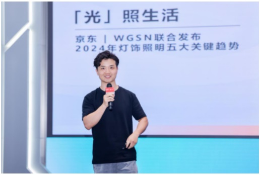 在這場充滿前瞻性的活動中,京東燈飾照明業務經理 牛群介以《「光」照生活》為題,為在場賓客帶來了與WGSN聯合發布的2024年燈飾照明五大關鍵趨勢。作為提升幸福感和生活品質的重要載體,燈具設計已不再是簡單的照明工具,更成為了點亮幸福生活的璀璨星辰。