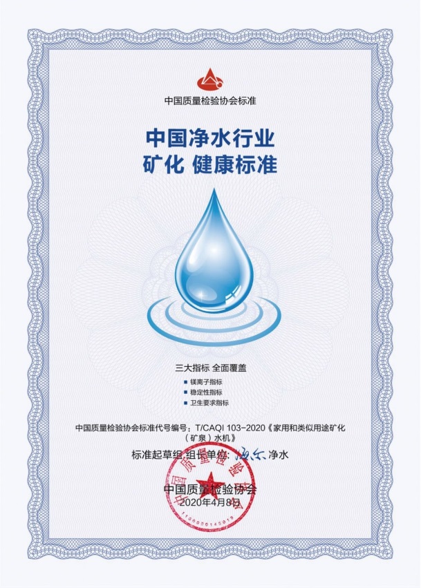當然,所謂健康礦泉水,并不是自說自話,卡薩帝凈水機還曾獲得過中國質(zhì)量協(xié)會頒發(fā)的天然礦泉水標準。這也是凈水機行業(yè)首個天然礦泉水標準,不但填補了行業(yè)技術空白,也為凈水機的高端化、健康化轉型樹立了風向標。